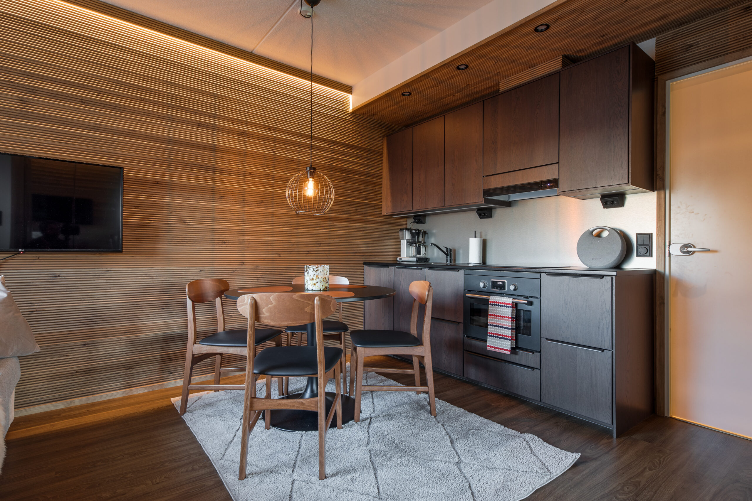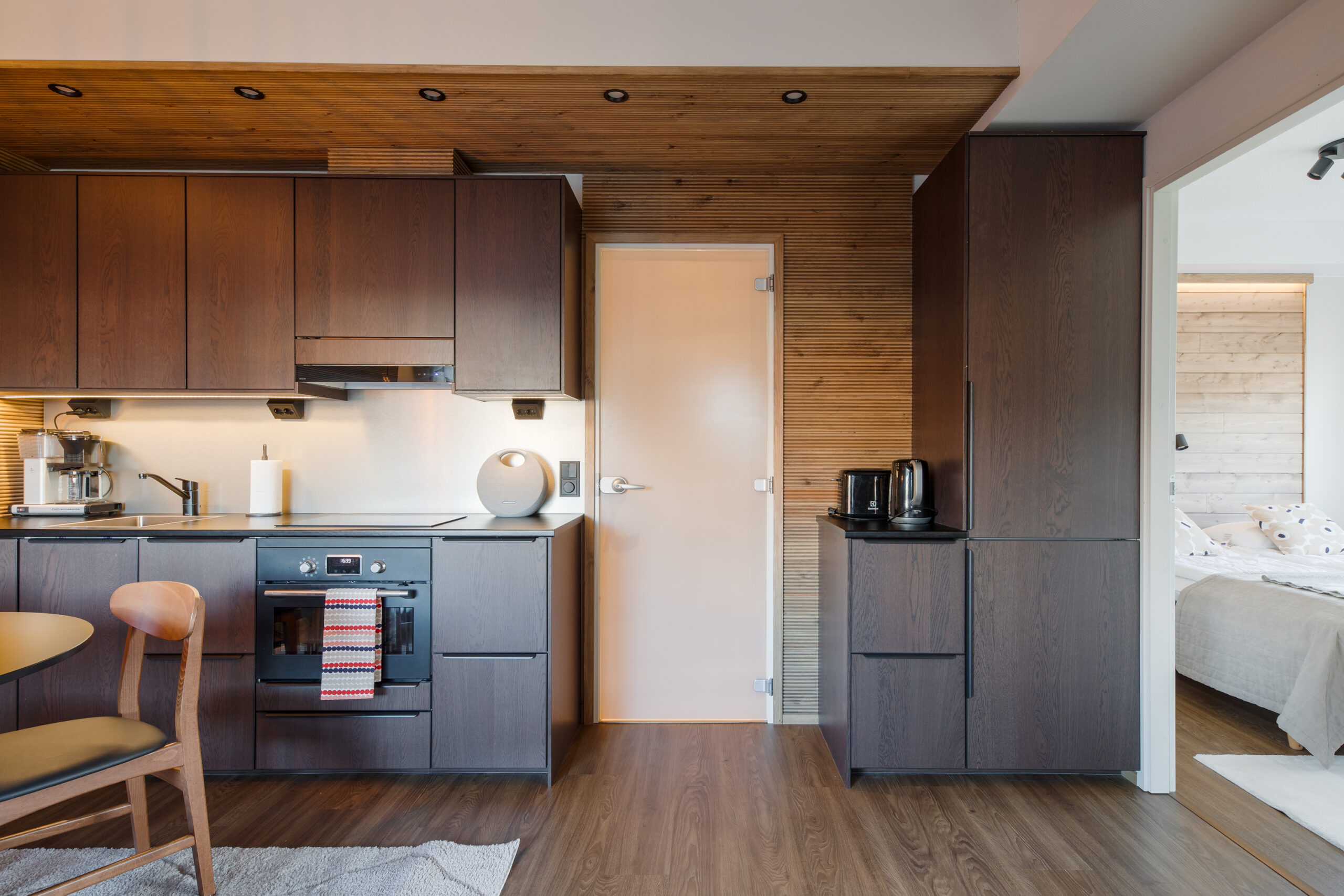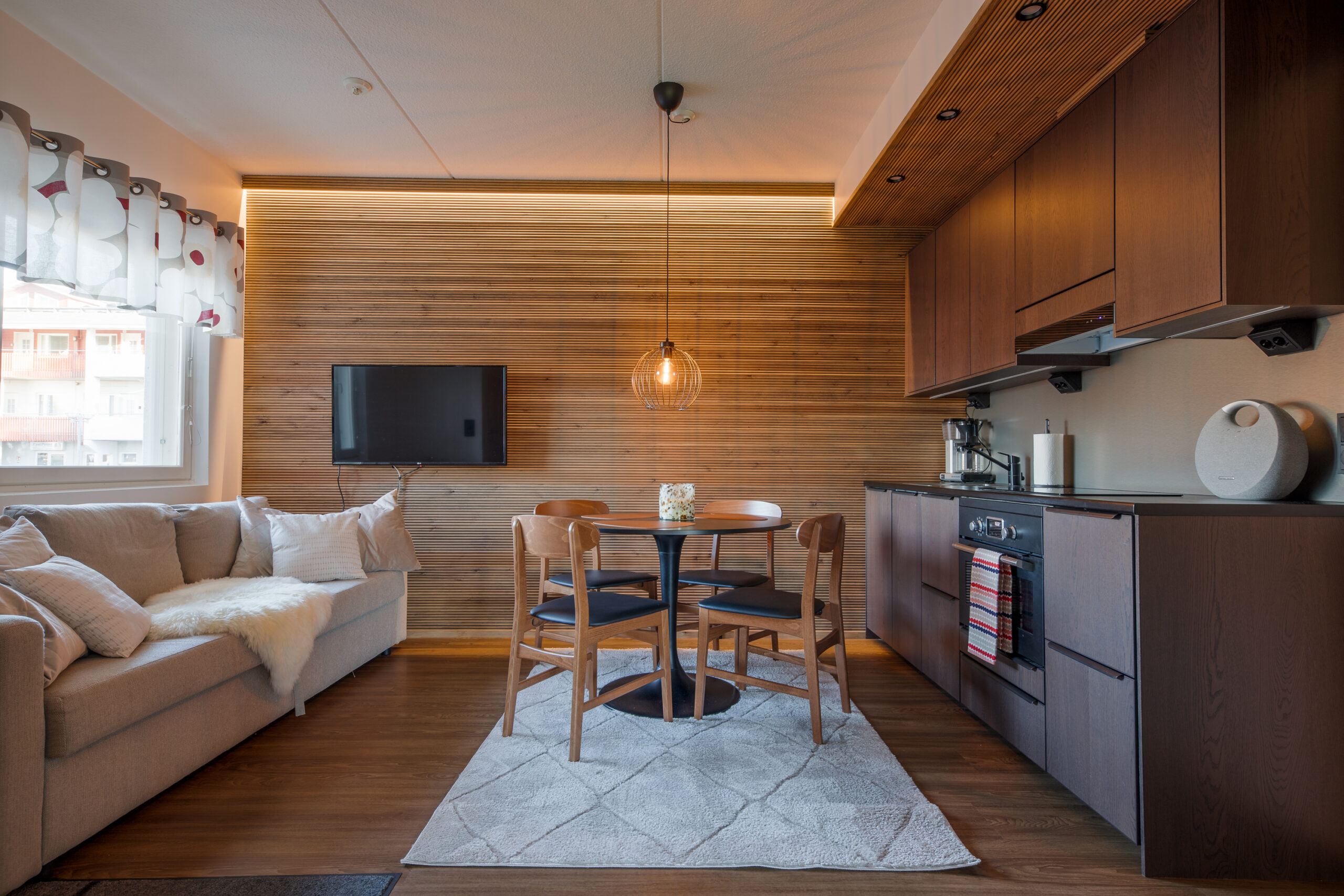 Moderni kahden makuuhuoneen päätyhuoneisto Levin hiihtokeskuksen keskeisimmällä paikalla. Tämä huoneisto yhdistää erinomaisen sijainnin ja rauhallisuuden, tarjoten täydellisen tukikohdan lomallesi. Kaikki tärkeimmät palvelut ja aktiviteetit ovat vain kävelymatkan päässä, joten voit nauttia Levistä ilman vaivannäköä.